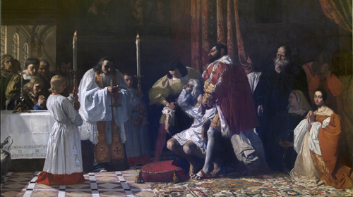 Auch dieses Gemälde ist derzeit im Von der Heydt-Museum zu sehen: Das Bild „Die letzten Augenblicke im Leben von Leonardo da Vinci“ gehört zweifelsohne zu den Hauptwerken von Jean-François Gigoux (1806-1894). Gigoux war 1827 von Besançon nach Paris gekommen, hatte dort an der Ecole des Beaux-Arts studiert und sich den romantischen Tendenzen angeschlossen. Schon früh hatte er als Illustrator und Lithograph Anerkennung erhalten. Aber mit diesem einen Monumentalgemälde etablierte er sich als Maler in den Pariser Salons. Gigoux hat dem Thema des sterbenden Leonardo, das von vielen Künstlern gemalt worden ist, eine eigene Interpretation hinzugefügt. Bei ihm kniet sich Leonardo da Vinci, um Gott um Vergebung zu bitten für all die Bilder, die er nicht gemalt hat, aber in seiner Lebenszeit hätte malen können … Gigoux erfüllt hier die Erwartungen seiner Epoche, die eine romantisierende Historienmalerei feierte. Aber sein Gemälde ist auch ein Bekenntnis zur Kunst und zu ihrer Geschichte. Er kam dem selbst nach: Er war nicht nur ein vorzüglicher Künstler, sondern er sammelte auch Kunst. Mit seinen Honoraren als Maler und Illustrator, welche er durch Grundstücksgeschäfte vermehrte, und mit dem Blick des ausgebildeten Künstlers war ihm dies im großen Stil möglich. Gigoux beschränkte sich nicht auf eine Epoche, sondern er erwarb Kunst von der italienischen Frührenaissance bis hin zu seinen Zeitgenossen in Frankreich. Sein besonderes Augenmerk galt der Zeichnung. Mit seinem breiten Spektrum lag er im Trend. Im 19. Jahrhundert wurde das Museum etabliert und das enzyklopädische Sammeln eingeführt. Und weil Gigoux einzelne Werke weiterveräußerte, um sich höherrangige leisten zu können, umfasst seine Sammlung Meisterwerke aus unterschiedlichen Epochen. Noch zu Lebzeiten vermachte er seine Sammlung seiner Heimatstadt Besançon, die dafür ein eigenes Museum baute.