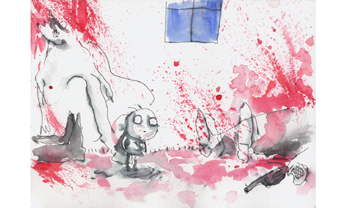 „The World of Tim Burton“ im Max-Ernst-Museum ist die erste Ausstellung von Werken Tim Burtons in Deutschland. Zuvor geisterten seine Strichmonster bereits in New York und L.A., Melbourne, Prag, in Tokio und Osaka, Paris und Seoul durch die Museen. Immerhin sind es auch über 630 Zeichnungen, ein paar Gemälde, lustige böse Objekte aus den Filmen, Maquetten (das sind Miniwelten von dem, was mal sein wird), etliche Storyboards, Fotos und natürlich jede Menge Filmmaterial in zahlreichen dunklen Ecken im Museum. Nicht zu vergessen der Darkroom mit Schwarzlichtarbeiten, von denen eine wohl vor Ort unter dem Einfluss der Max-Ernst-Werke entstanden ist. Ausstellungsdidaktisch sind Burtons Charaktere nicht nur in missverstandene Außenseiter eingeteilt, auch nicht verwirklichte Projekte und Karnevaleskes sind im Rheinland zu bewundern. Die schnuckeligen Monstrositäten und stillen Entstellten bevölkern oft in düsteren Farben die Wände. Ob das mit seiner Herkunft aus den standardisierten US-amerikanischen Vorstädten zu tun hat? Bestimmt. Das Gerippe des kleinen Beetlejuice aus Metall, Glas und Schaumlatex glaubt das jedenfalls auch. Und so wandern die Besucher durch die bizarren Welten eines Gehirns dessen Morbidität nur durch das Fantastische gebremst wird. Und das vielleicht auch einen anderen weg hätte einschlagen können.