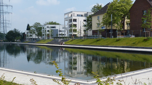Wohnen am neuen Gewässer: Nicht nur am Essener Niederfeldsee hat man erkannt, dass Wasserflächen die Attraktivität der Quartiere erhöhen