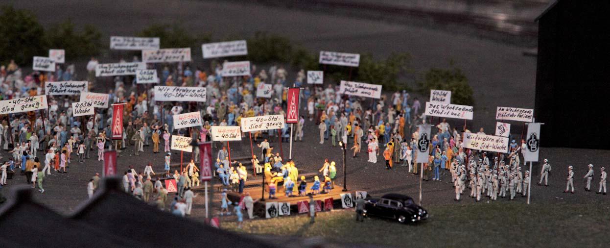 Der 1. Mai als gewerkschaftlicher Kampftag existiert bereits seit über 120 Jahren. Arbeiter in den USA streikten, um den Achtstundentag zu erzwingen. Später institutionalisierte sich der Termin weltweit. In Deutschland wurde der Tag – Ironie der Geschichte – erst nach Machtergreifung der Nazis zum staatlichen Feiertag. Sogar sozialdemokratisch geführte Regierungen der Weimarer Republik ließen die Arbeiter an ihrem Festtag weiter arbeiten. Im geteilten Deutschland von 1949 bis 1989 teilte sich auch der Feiertag. Hüben gab es Bratwurst und Bier, drüben eine Mischung aus Militärparade und Karnevalszug. Nach der Wiedervereinigung weitete sich das westliche Modell des arbeits- und sinnfreien Tages auf den Osten aus. Erst in den letzten Jahren, so der Vorsitzende des DGB-Bezirk NRW Guntram Schneider, habe es wieder mehr Interesse an den gewerkschaftlichen Veranstaltungen gegeben. „Der Mai hat an Aktualität gewonnen.“ Die Teilnehmerzahl sei in den letzten zwei bis drei Jahren angestiegen. Jetzt, im Angesicht drohender Massenarbeitslosigkeit, spreche, so der Gewerkschaftler, einiges dafür, dass sich viele Menschen in Deutschland an den DGB-Protesten unter dem Motto „Arbeit für alle!“ beteiligen.