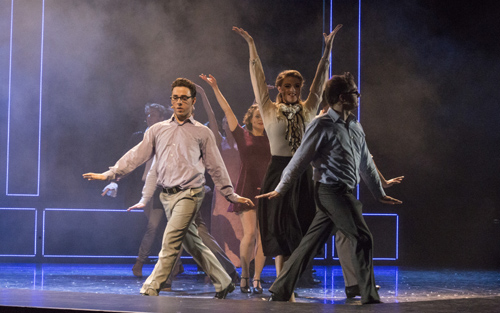 Martin Lingnau, der so fetzige Musicals wie „Swinging St. Pauli“ geschrieben hat, versucht sich hier an einem durchkomponierten Stück à la Lloyd Webber – und verliert dabei etwas die Leichtigkeit. Was durch die allzu Percussion- und Keyboard-lastigen Arrangements seiner rockigen Pop-Nummern noch verstärkt wird. Und durch das unprofessionelle Sounddesign zum Ärgernis wird, wenn das Orchester Stimmen und Texte schluckt. Sabrina Weckerlin befreit sich noch mit Können und Routine aus dieser Soundfalle, aber Philipp Büttner kann dem nur seine gequetscht wirkende Beltstimme entgegensetzen, die ihn im Liebesduett mit Lotte dann völlig abschmieren lässt. Auch schauspielerisch wird er von seinem Bühnen-Busenfreund Wilhelm (Florian Minnerop) ausgestochen, sodass man sich zur „Halbzeit“ eigentlich einen Rollenwechsel der beiden wünscht. Ansonsten führt Folkwang-Professor Gil Mehmert, im Nebenberuf einer unserer profiliertesten Musical-Regisseure, das Ensemble mit sicherer Hand durch das von Simon Eihenberger hübsch choreografierte und von Eva-Maria van Acker und Maria Wolgast liebevoll ausgestattete Stück. Nur: Etwas weniger Bühnennebel wäre mehr gewesen!
