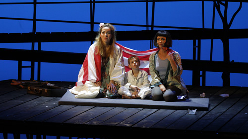 Thematisch fügt sich das italienische Werk gewissermaßen in die lose Reihe amerikanischer Opern ein, die Hilchenbach gern in Hagen zeigt. Als Regisseur hat er keine neue Deutung des zwar gut 100 Jahre alten, aber augenfällig aktuellen Stoffs zu bieten. Seine szenische Ausgestaltung wirkt sogar ausgesprochen uninspiriert zwischen allzu naheliegenden Bildern, klischeehaften Dekorationen und widersprüchlichen Konstellationen.